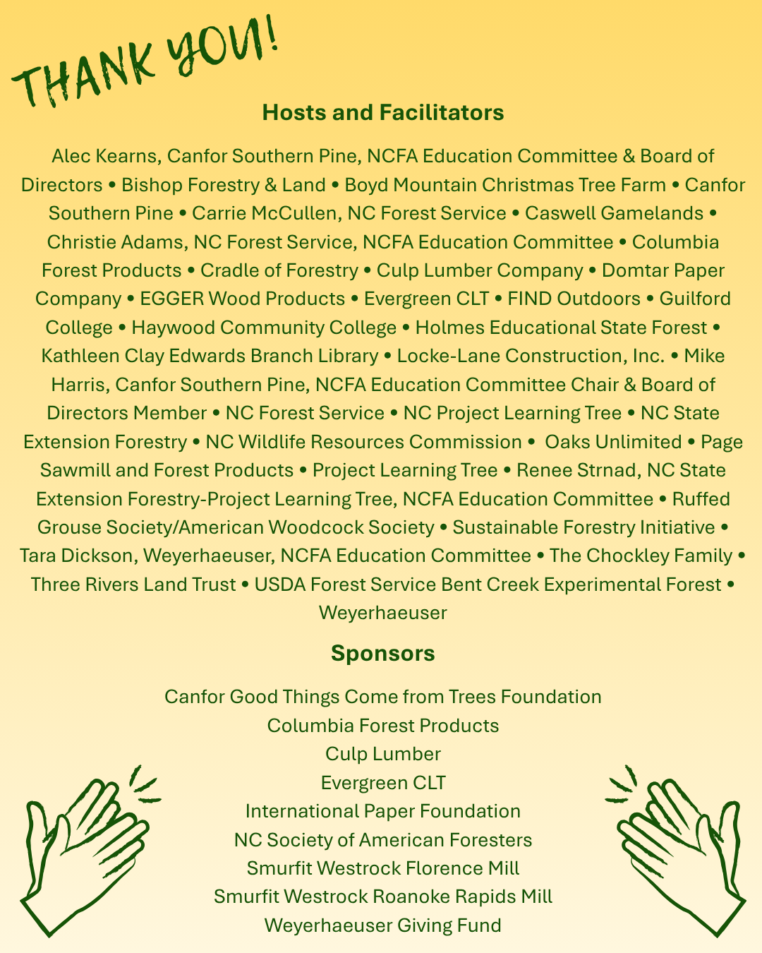 The North Carolina Forestry Association is the lead organization and is pleased to partner with the North Carolina Sustainable Forestry Initiative State Implementation Committee, North Carolina Project Learning Tree, and the North Carolina Forest Service.